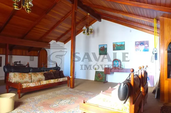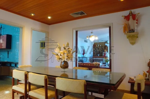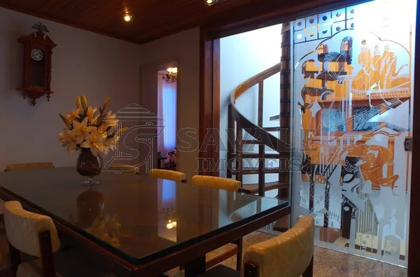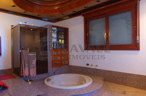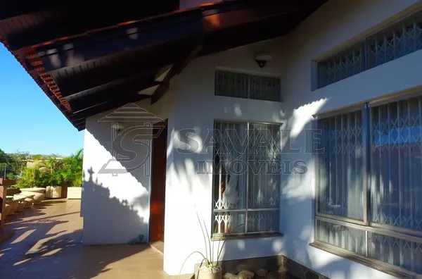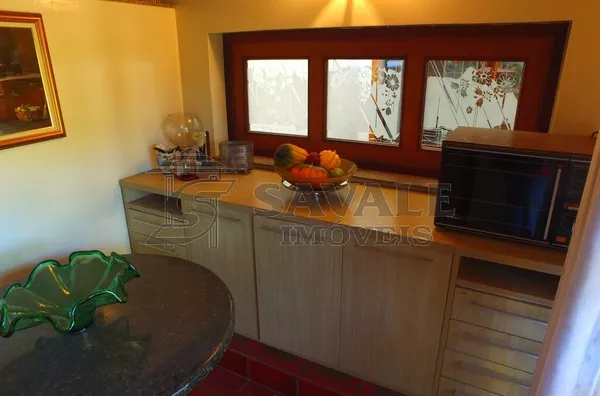 Com 03 dormitórios, 03 banheiros, sendo 01 com banheira de hidromassagem, sala de estar ampla com lareira, sala de TV, 02 salas de jantar, 02 cozinhas, dependência de empregada, escritório;