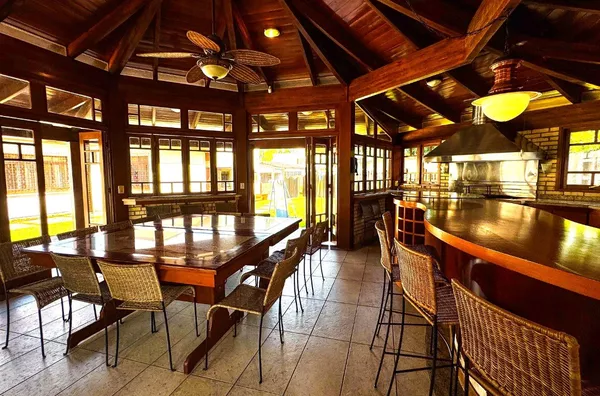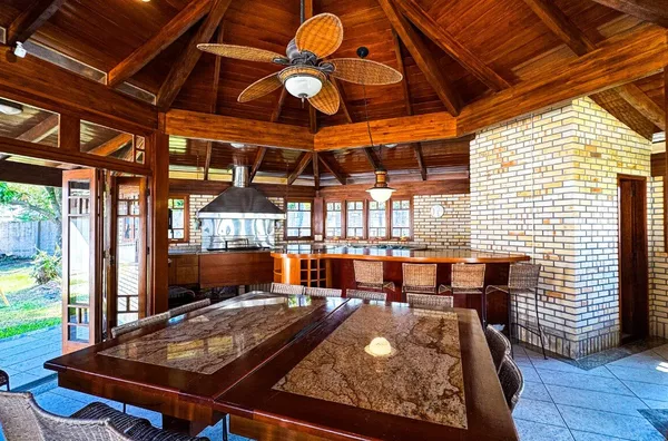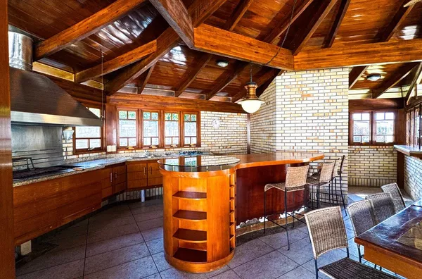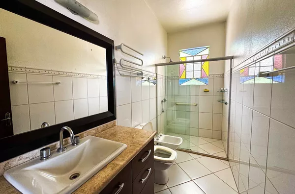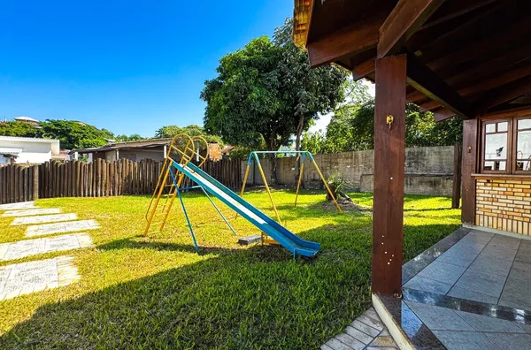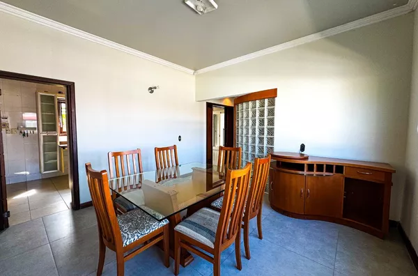 Com 04 dormitórios, sendo 01 suíte, sala de estar ampla, sala de jantar, cozinha, banheiro social, despensa, lavanderia, garagem fechada para 01 carro e estacionamento com capacidade para aprox. 10 carros, Quiosque rústico com banheiro e churrasqueira;
