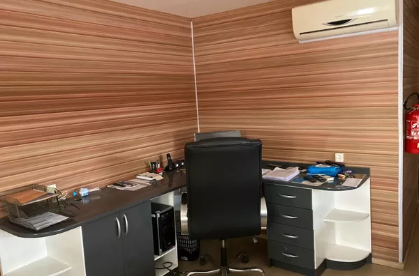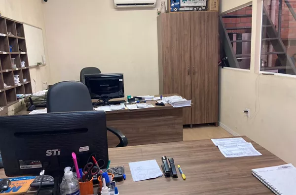 Dois escritórios montados com 20,00m² cada com banheiro com porcelanato, móveis planejados, com sofá, televisão, 03 computadores, impressora profissional, 02 ar condicionados;