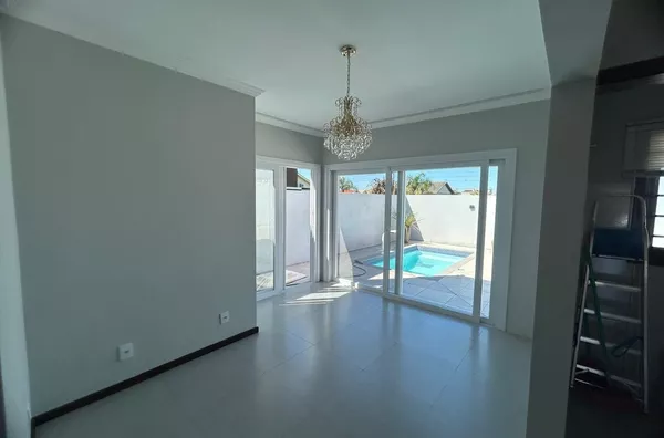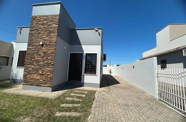 Excelente casa de alvenaria, medindo 70,00m², com 02 dormitórios, sala de estar, sala de jantar, cozinha, banheiro social e lavanderia. Possui móveis sob medida na sala, cozinha e dormitório (conforme imagens). Teto em laje, com detalhes em gesso, piso com porcelanato e aberturas em itaúba e PVC. Possui piscina, funcionando perfeitamente e sistema de câmeras. Terreno medindo 250,00m², todo cercado com muros e grades. Imóvel apto para financiamento bancário.