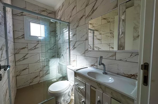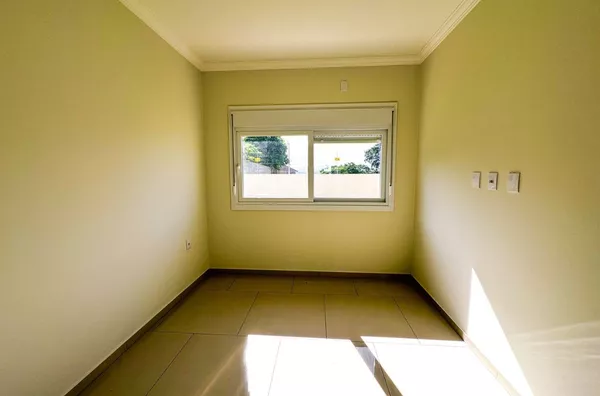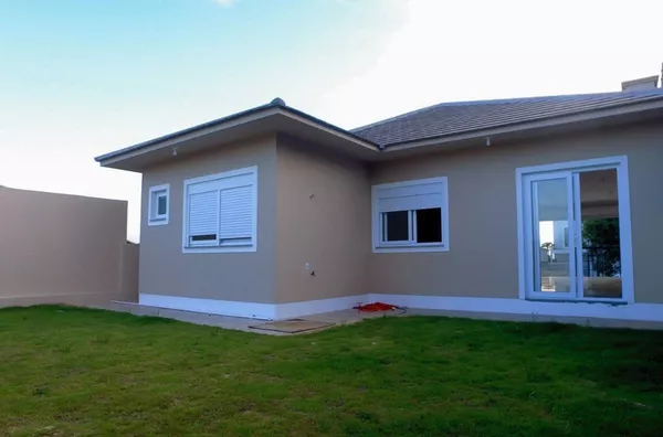 Pisos em porcelanato, espera para ar condicionado em todos os ambientes, garagem para dois carros em posição lateral, porta de garagem automatizada com cortina em alumínio com PVC, aberturas em alumínio e PVC;