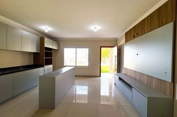 Com 03 dormitórios sendo uma suíte, sala e cozinha em conceito aberto com móveis planejados, formando um amplo espaço de convivência e interação com banheiro integrado, espaço gourmet integrado a garagem;