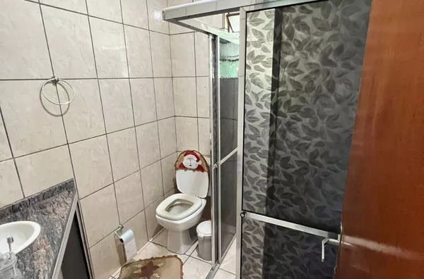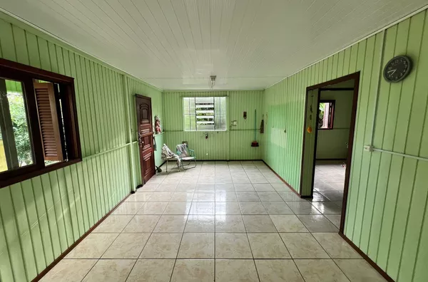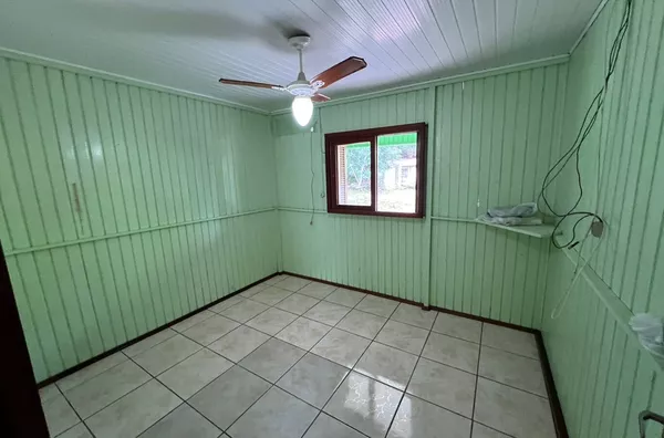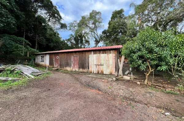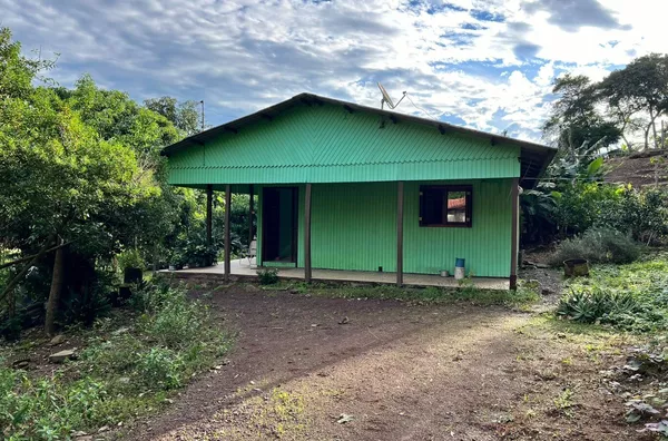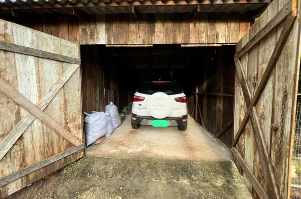 Possui casa de madeira medindo em torno de 90m², com 2 dormitórios, 1 banheiro, sala e cozinha integradas.