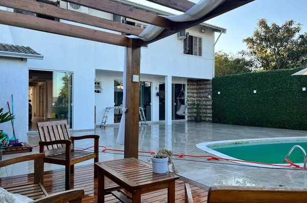 Imóvel de alto padrão, com aberturas em itaúba, escada em granito, placas solares, sistema de alarme e câmeras de segurança, pátio todo cercado com muros e grades, com portão eletrônico e uma ampla e privativa área de lazer com piscina, deck e pergolado, edificados em um terreno de 360,00m², mais 1.200,00m² de área de posse.