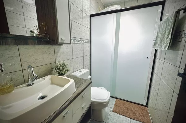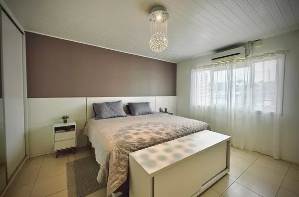 Excelente casa de alvenaria, com área construída de 316,00m², dispondo no andar superior de 4 dormitórios, sendo 1 suíte e uma ampla e aconchegante sala de estar com pé direito alto, 2 banheiros.