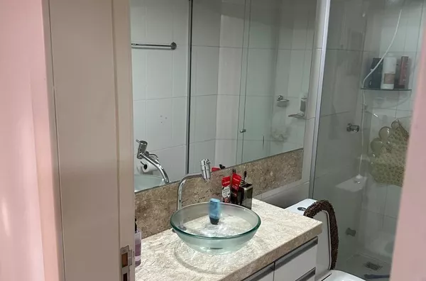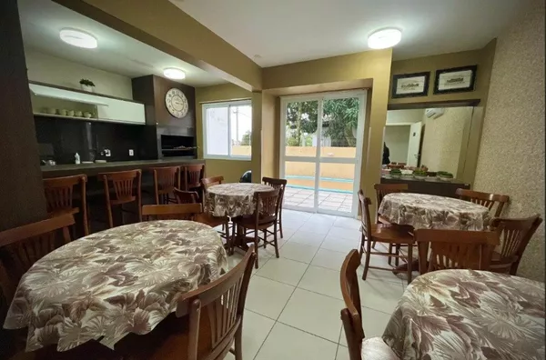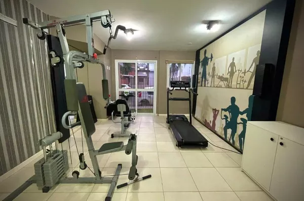 Edifício com elevador, salão de festas, academia, piscina e churrasqueira.