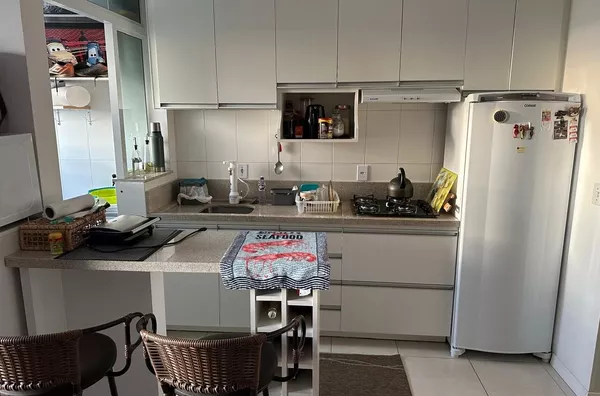 Apartamento com área privativa de 62,58m², com 02 dormitórios, sala de estar/ jantar, cozinha e banheiro.