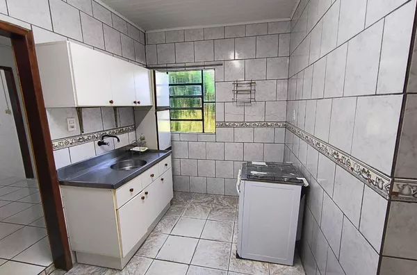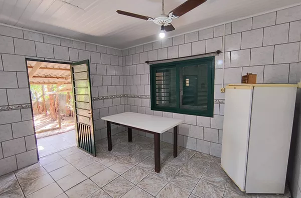 Possui garagem, área com churrasqueira e banheiro auxiliar.