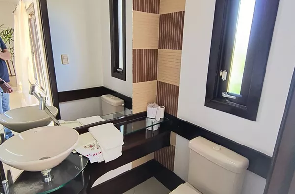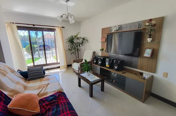 Casa de alvenaria, medindo 210,00m², com 04 dormitórios, sendo 01 suíte, sala de estar, sala de jogos, sala de jantar, cozinha, lavanderia, lavabo, banheiro auxiliar, garagem para 02 carros, com churrasqueira e banheiro;