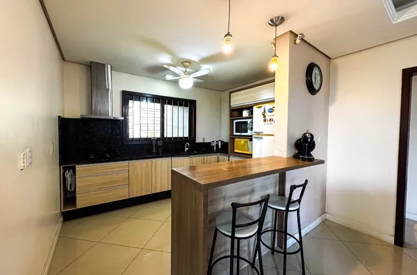 Excelente casa de alvenaria, localizada próxima ao Centro da Cidade, medindo 150,00m² de área privativa, com 03 dormitórios, sendo 01 deles suíte, sala de estar com lareira, sala de jantar, cozinha, banheiro social e garagem com lavanderia e churrasqueira.