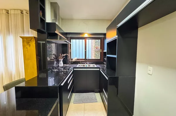 Possui 2 dormitórios sendo um suíte, sala de estar e jantar integradas, cozinha, 1 banheiro social e área de serviço.