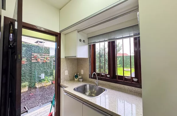 Teto em laje, telhas de concreto, aberturas em madeira e semi mobiliada com móveis sob medida.