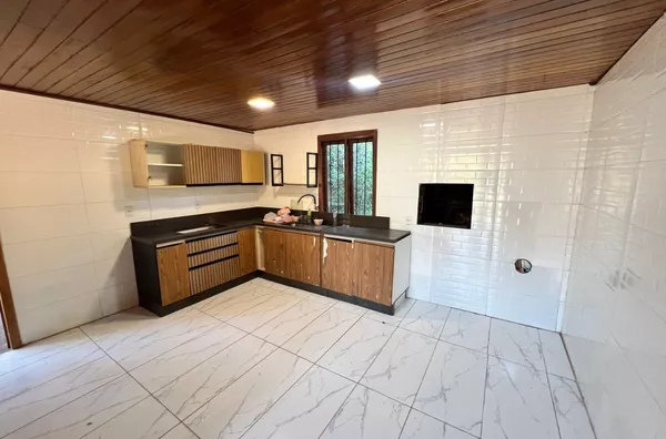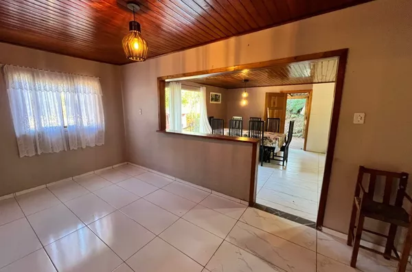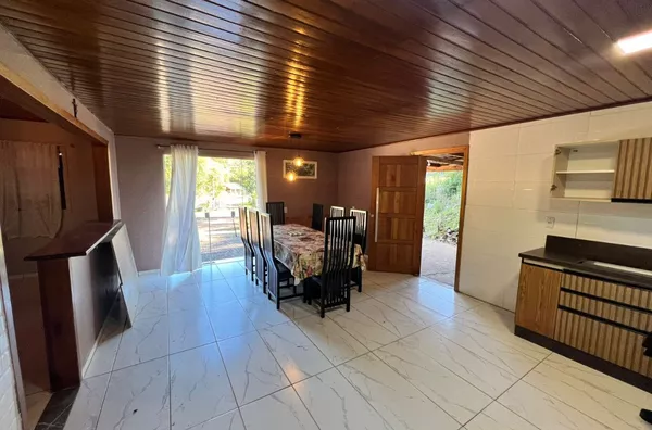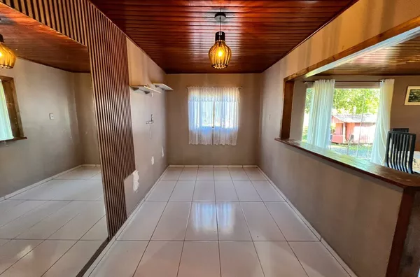 Possui casa de alvenaria de 100,00m² com 2 dormitórios, sendo 1suíte, banheiro social, ampla cozinha com sala de jantar e sala de estar, área coberta na lateral para 1 carro.