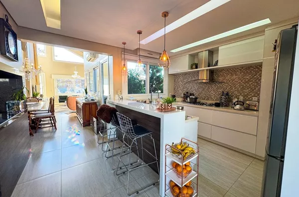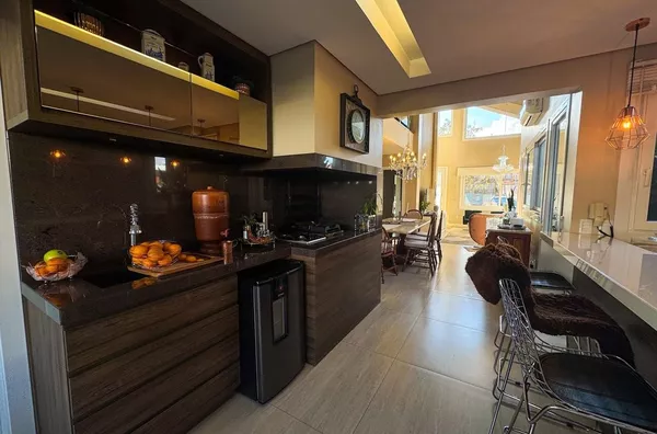 - Cozinha com espaço gourmet e churrasqueira.