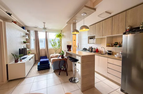 Excelente apartamento, localizado no Edificio Urban 100, medindo 50,69m² de área privativa, com 02 dormitórios, sala de estar/jantar integradas, banheiro social e lavanderia; Im´vel com móveis sob medida na sala, cozinha, lavanderia e banheiro (conforme fotos). Prédio com elevador e salão de festas. Possui box de garagem coberto. Ótima localização, próximo a comercios em geral e escola.