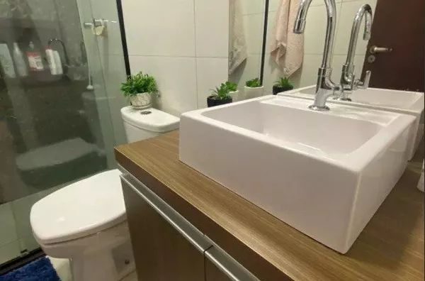 Piso em porcelanato, acabamento em gesso, detalhes com led;