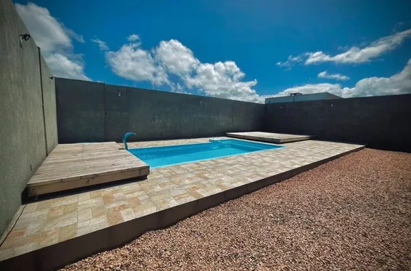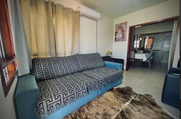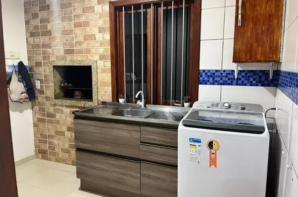 Com 02 dormitórios sendo 01 suíte, sala de estar, jantar e cozinha, banheiro social, lavanderia e churrasqueira;