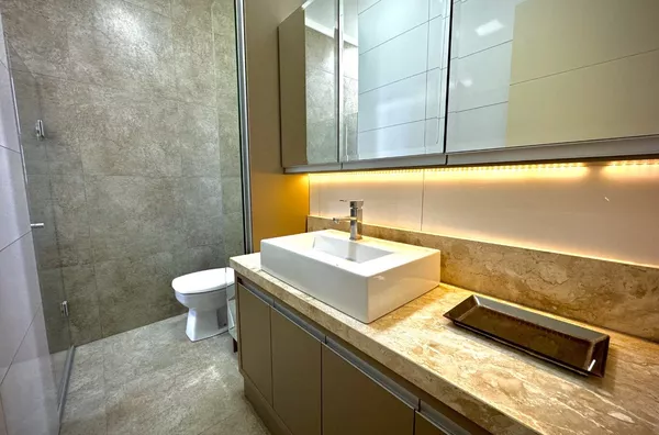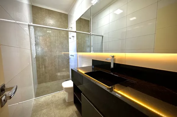Aberturas em PVC, ar condicionados nos dormitórios e na sala de estar;