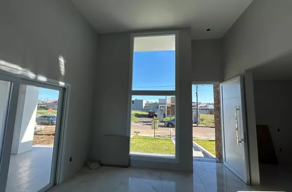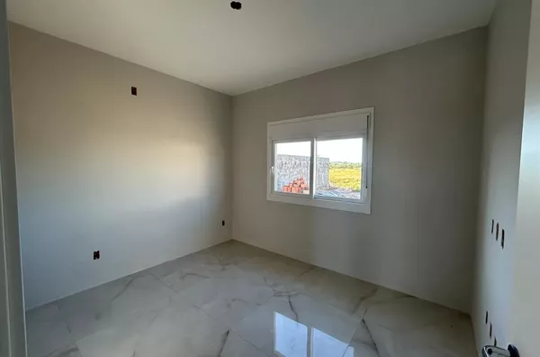 Casa de alvenaria nova, localizada no Bairro São Rafael, com área privativa de 94,00m², com 02 dormitórios, sendo 01 suíte, sala de estar e jantar integradas com pé direito alto, cozinha com churrasqueira, banheiro social, lavanderia interna e garagem para 1 carro. Conta com um excelente pátio nos fundos próprio para instalação de piscina e/ou área gourmet. Piso em porcelanato, aberturas em PVC. Terreno medindo 390,00m² (13x30). O imóvel está em fase de acabamento.
