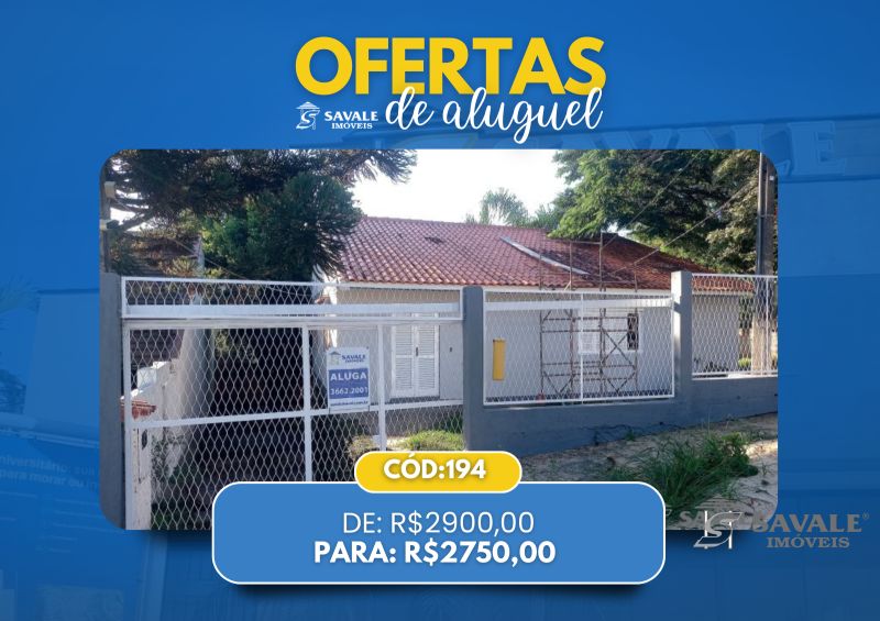 Casa na Rua Brasilino Pereira dos Santos 190, Bairro Cidade Alta, Não Mobiliado, 2 Dormitórios, Sala/Cozinha, Banheiro Social, Área Coberta para o Carro e com Churrasqueira, Pátio Fechado. Piso: Cerâmica. Valor do aluguel: 2.900,00 + TXS (IPTU, SEGURO PREDIAL).