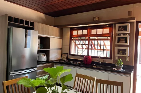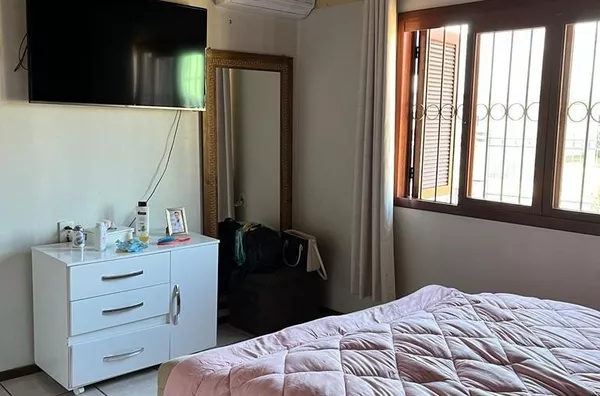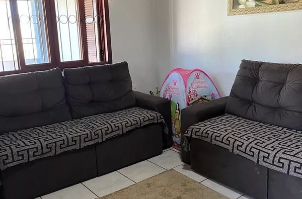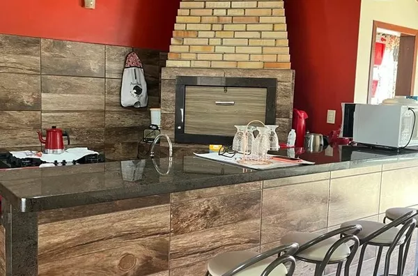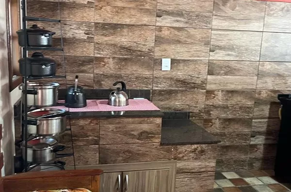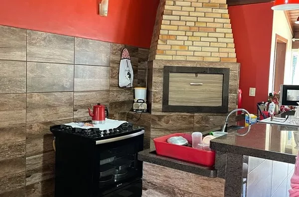 CASA DE ALVENARIA - SEMI MOBILIADA, 02 CASAS NO TERRENO, com área de 185m², sendo 03 dormitórios, 01 suite, sala de jantar e cozinha integradas. Sala de estar e espaço social com churrasqueira e fogão Campeiro.