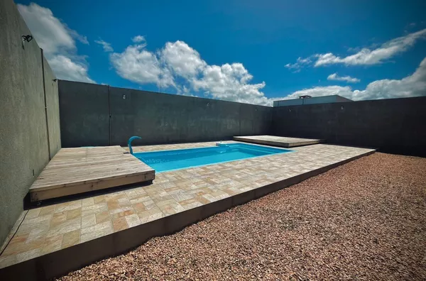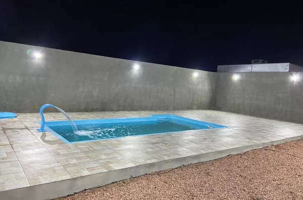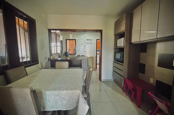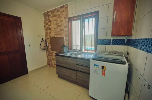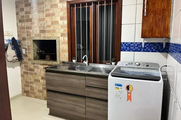 Com 02 dormitórios sendo 01 suíte, sala de estar, jantar e cozinha, banheiro social, lavanderia e churrasqueira;