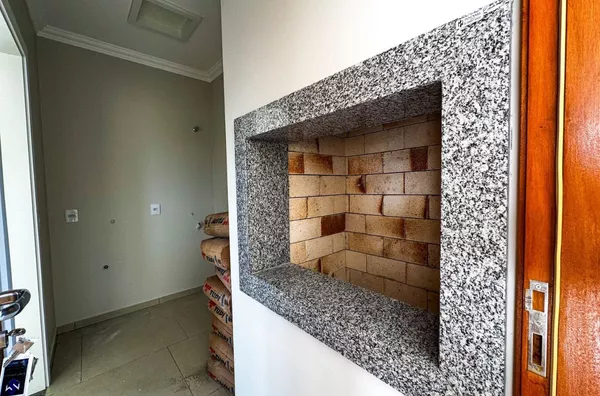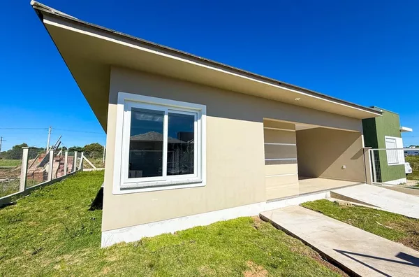 Com 2 dormitórios sendo 1 suíte, sala, cozinha, banheiro social, lavanderia, piso porcelanato, aberturas em Pvc, pátio fechado e abrigo para carro.