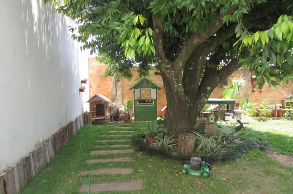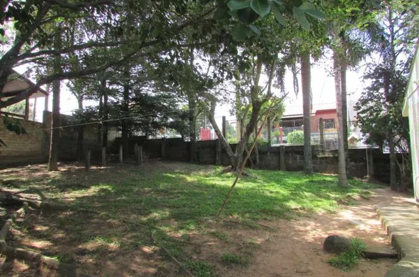 Amplo terreno, medindo 750,00m², com jardim e boa parte arborizada, fechado com muros e telas;