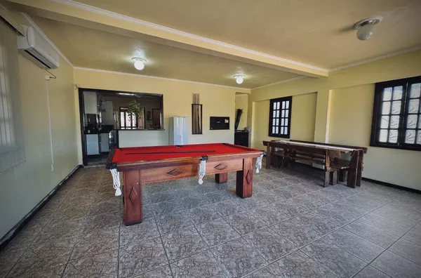 com 03 dormitórios, sendo 01 suíte, sala de estar ampla, com lareira, sala de jantar, cozinha com móveis sob medida, lavabo, lavanderia, sala de jogos com churrasqueira, banheiro social e varanda;