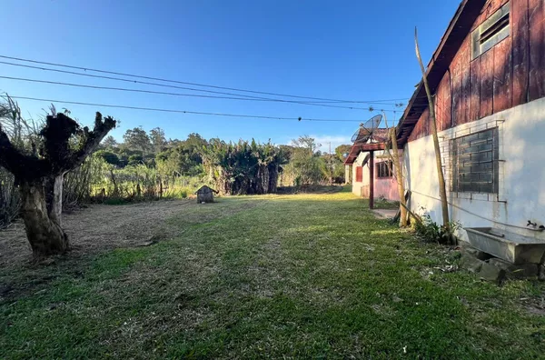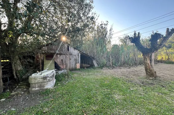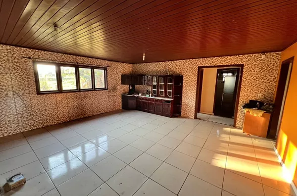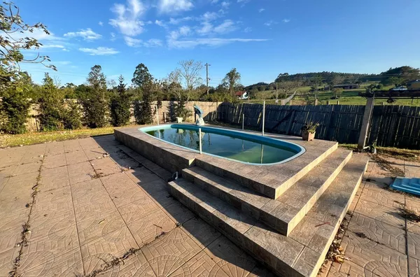 Possui uma casa de alvenaria ampla, galpão e piscina.