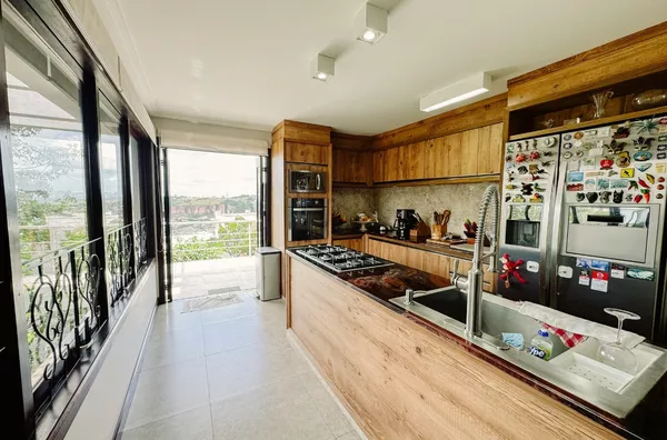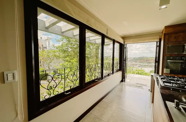 Com 03 suítes, sendo 01 com closet e banheira de hidromassagem, sala de estar, sala de jantar, cozinha completa, lavabo, sala de TV com sacada e linda vista panorâmica; garagem para 02 carros, com banheiro auxiliar.